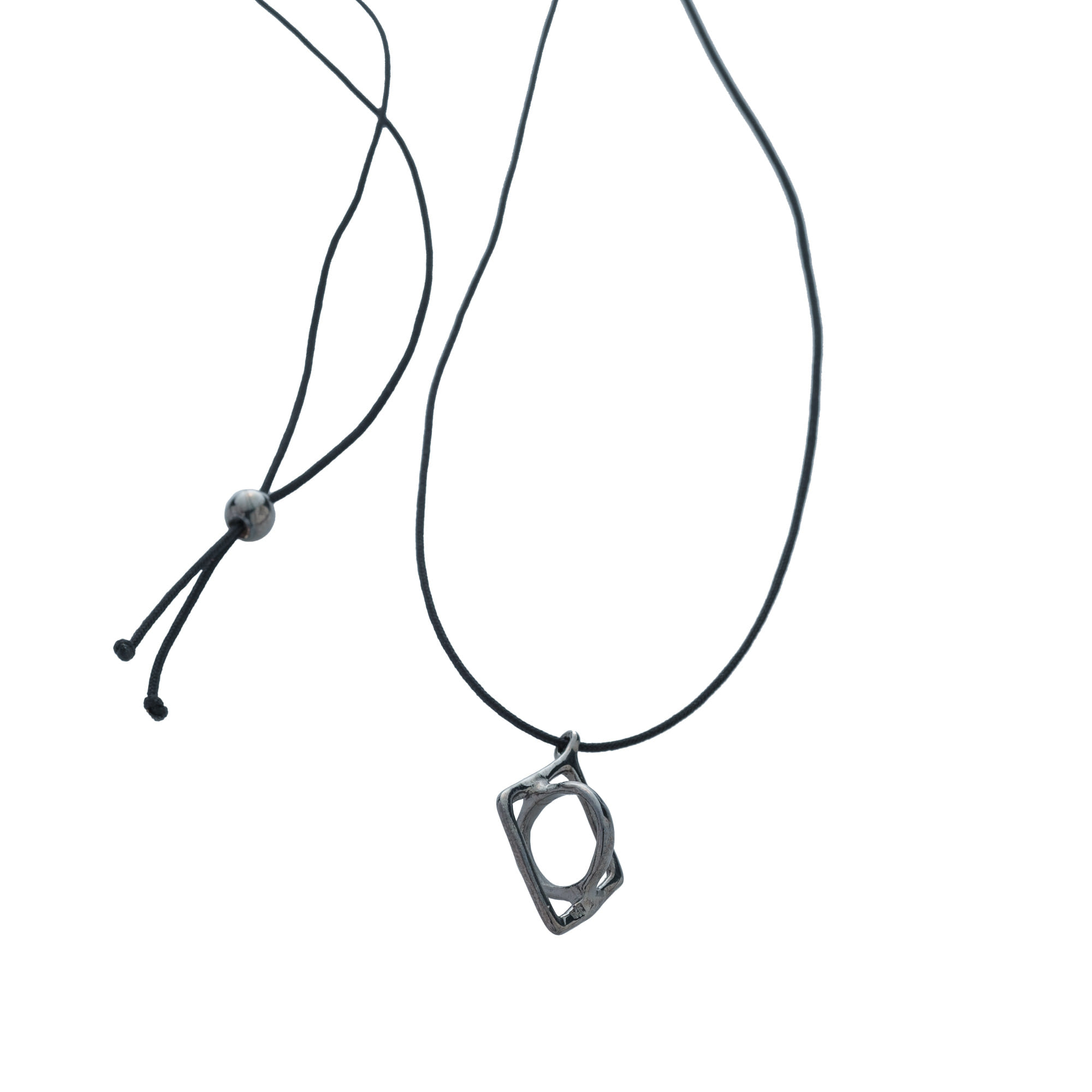 ΚΩΔΙΚΟΣ: 0207404Χειροποίητο κολιέ με κορδόνι μαύρο και σχέδιο από μοτίφ γραφίτη, εμπνευσμένο από κοστούμι του Αντώνη Φωκά για την παράσταση Άμλετ του Ουίλιαμ Σαίξπηρ (Σκηνοθεσία: Αλέξης Μινωτής, 1955). Λεπτομέρεια από κοστούμι του Ιωάννη Αποστολίδη στο ρόλο του Θεατρίνου.