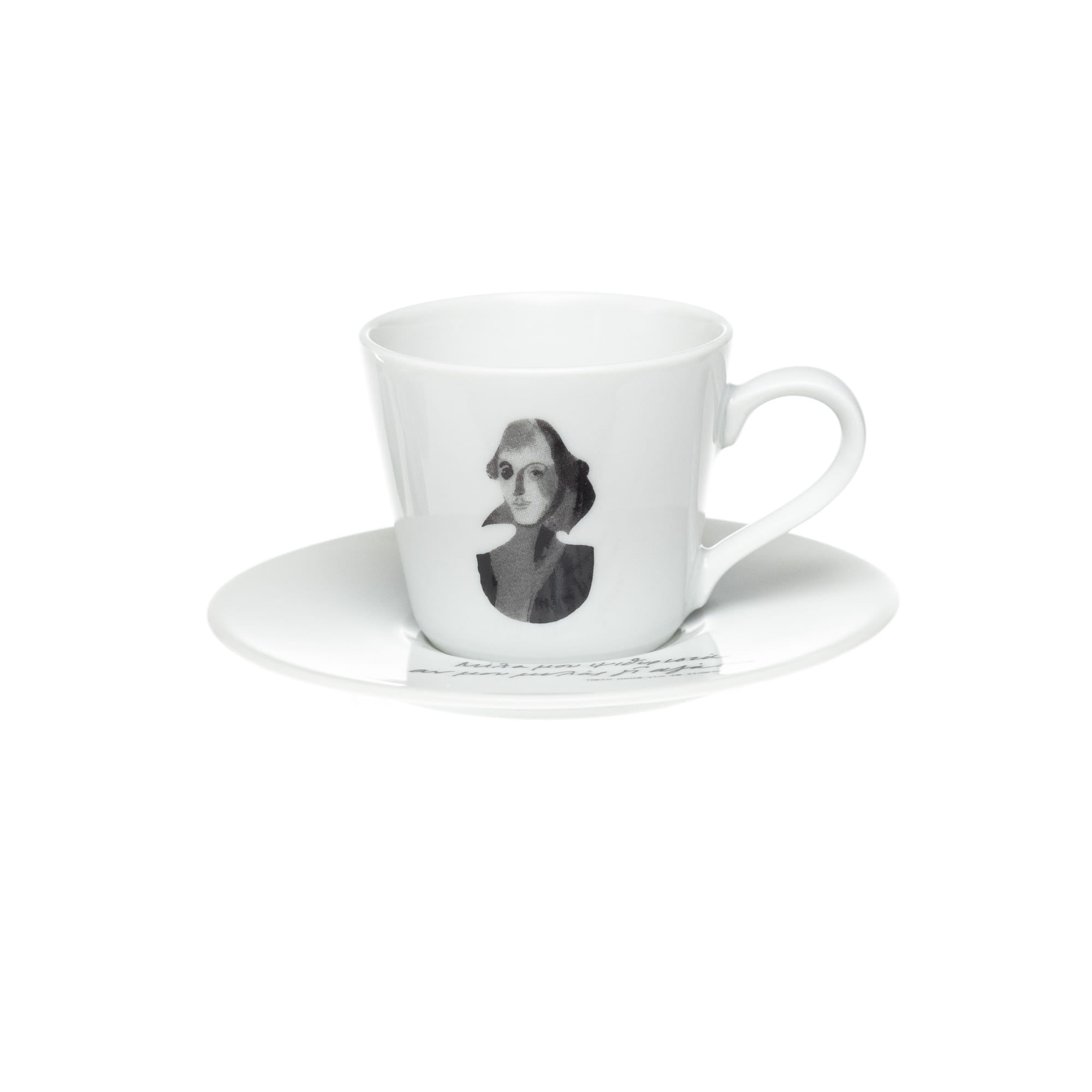 ΚΩΔΙΚΟΣ: 0209165Φλιτζανάκια espresso με πιατάκια, σετ 2 τεμαχίων, με σκίτσο του Ουίλιαμ Σαίξπηρ του Daniel Egneus.Στα πιατάκια εμφανίζεται κείμενο από το έργο του Ουίλιαμ Σαίξπηρ Πολύ κακό για το τίποτα: