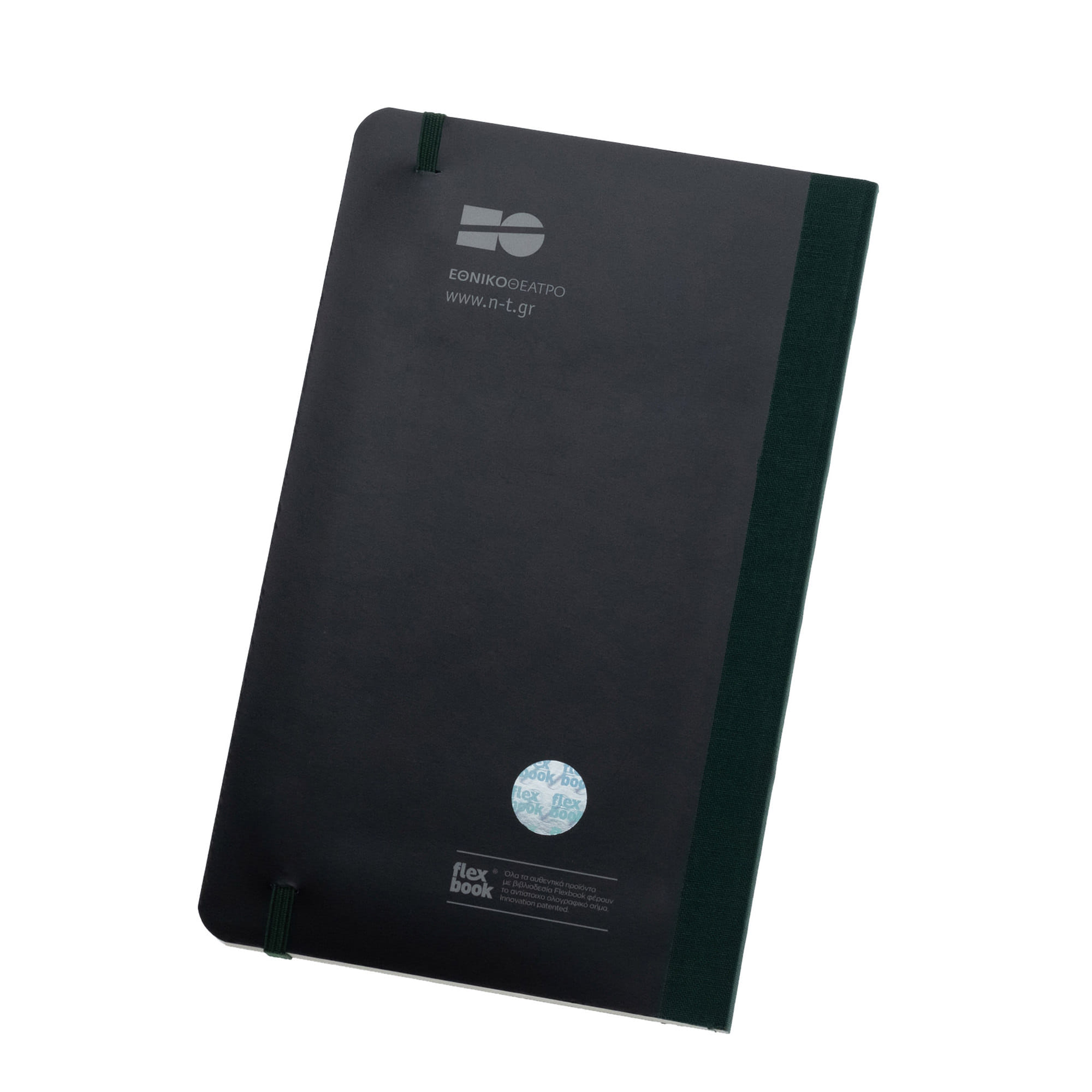 Εταιρικό σημειωματάριo Flex Book με λάστιχο και υφασμάτινη ράχη με το λογότυπο του Εθνικού Θεάτρου.