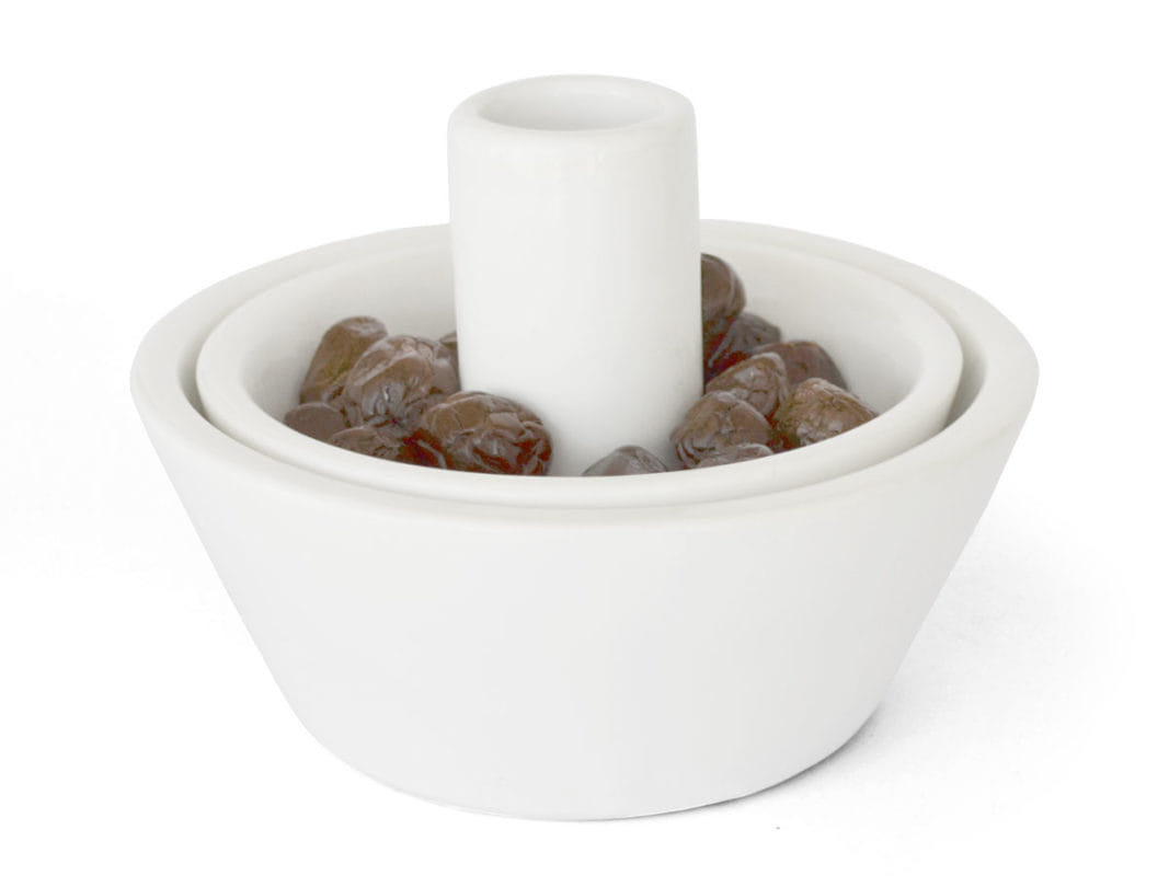 Κεραμικό μπολ σερβιρίσματος για ελιές με διπλό δοχείο ώστε να μένουν οι καρποί στην βάση.