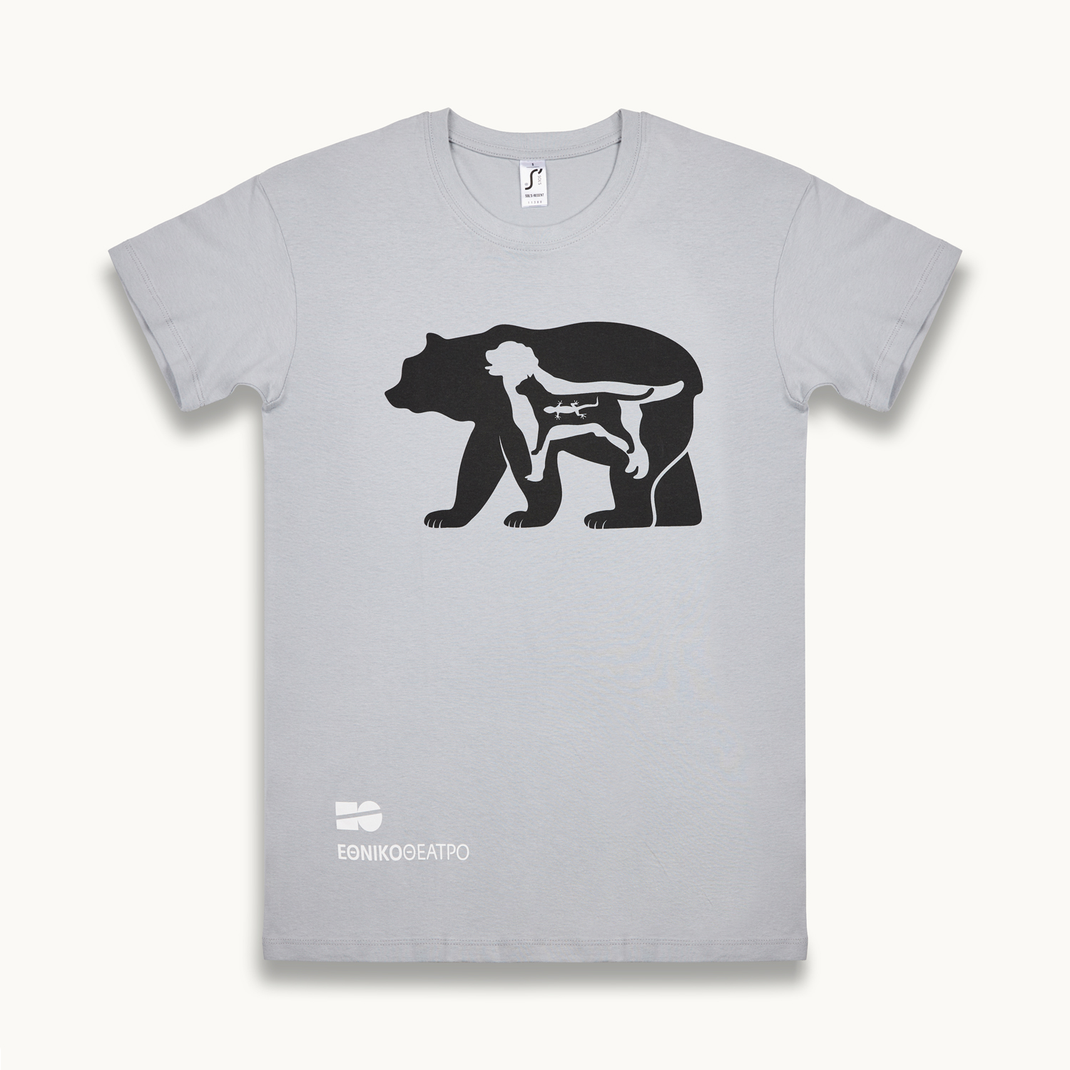 T-shirt κοντομάνικο σε γκρι χρώμα με σχέδιο εμπνευσμένο από την παράσταση Προβοκάτορες του Γιάννη Αποσκίτη (Σκηνοθεσία: Ορέστης Σταυρόπουλος, 2022).